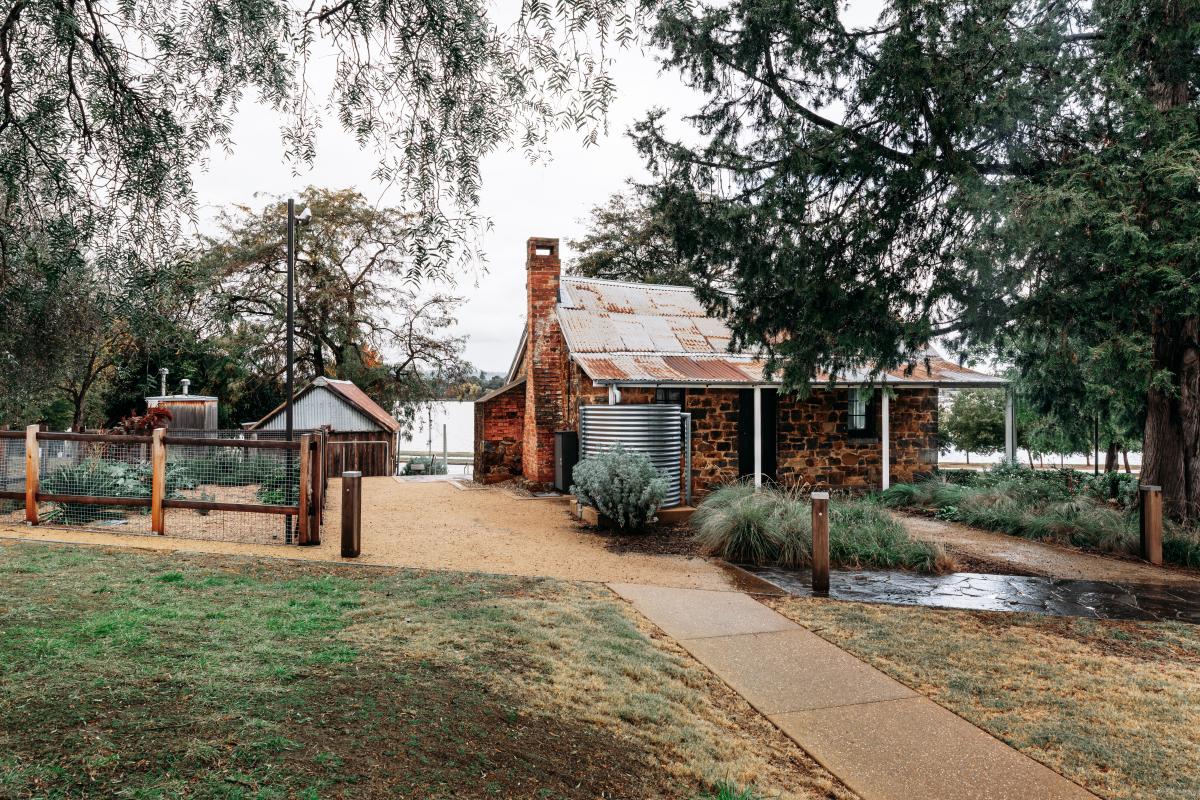 Blundells Farmhouse, Slab Cottage and Surrounds (also known as Blundells Cottage) is located on the northern shores of Lake Burley Griffin. Constructed in 1860 as part of the Duntroon Estate, the Cottage is the oldest remaining building within the National Triangle. The place is significant for its ability to demonstrate aspects of nineteenth century pastoral practices, vernacular architecture, and ways of life in the Canberra region. The site is rare as one of a small number of nineteenth century structures from pastoral settlement in the area prior to the establishment of the National Capital.